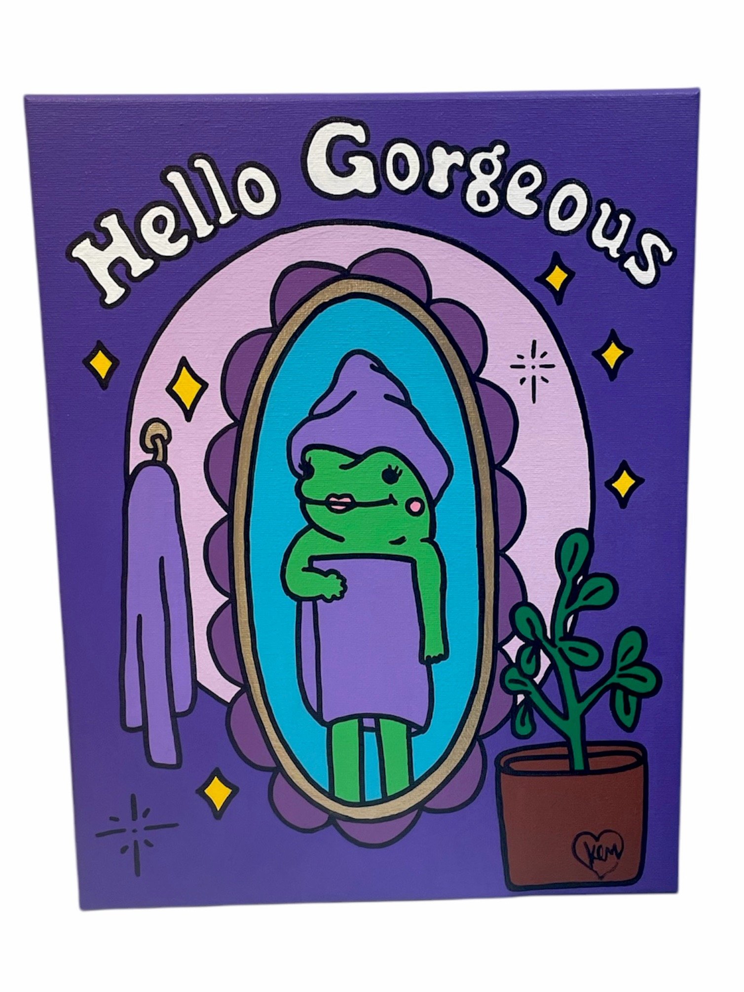14inx11in stretched canvas painted with acrylic paint and sealed with a clear gloss.