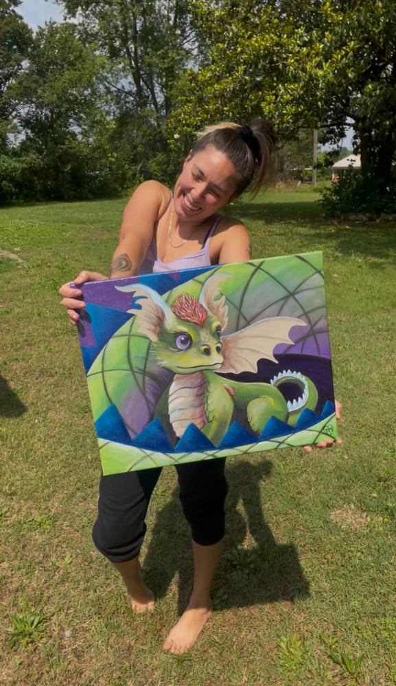 16inx20in stretched canvas painted with acrylic paint and sealed with a clear gloss.
