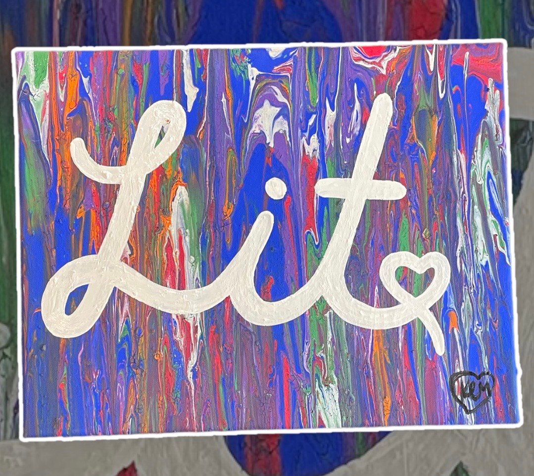 11inx14in stretched canvas painted with acrylic paint, and sealed with a clear gloss.