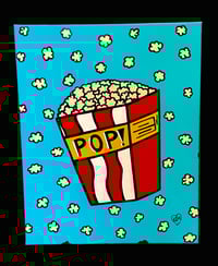 20inx16in stretched canvas painted with acrylic paint, and sealed with a clear gloss.